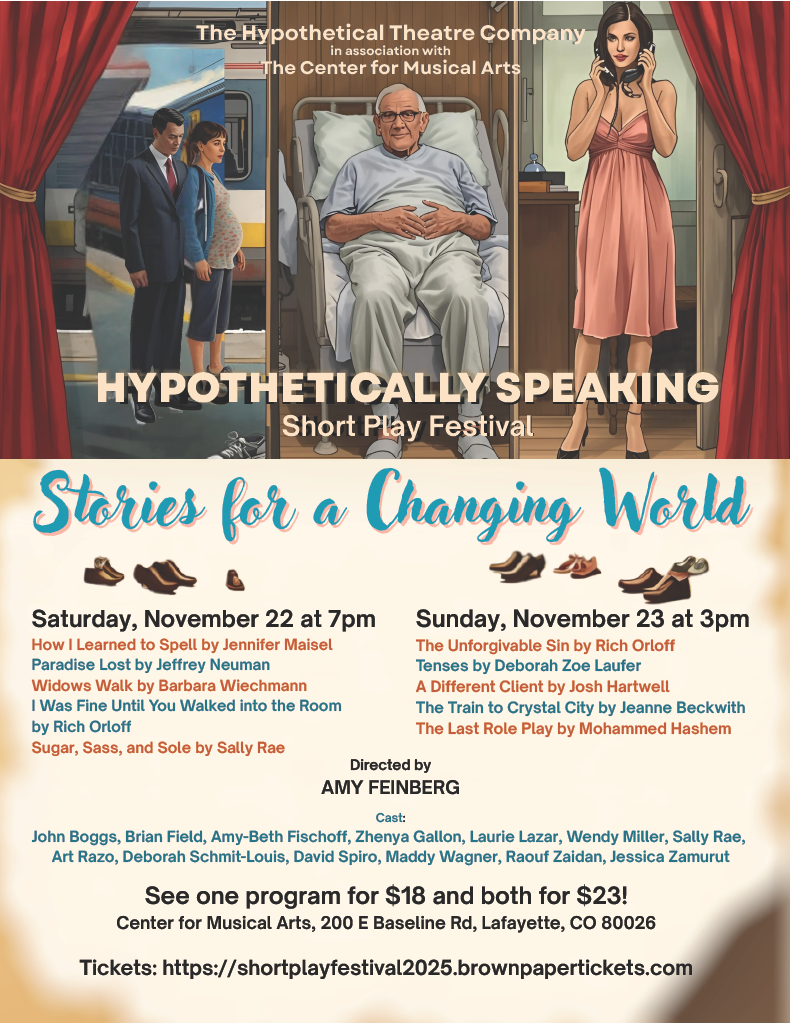 See Sugar, Sass and Sole as part of the Hypothetically Speaking Short Play Festival 2025” in Lafayette, Colorado!